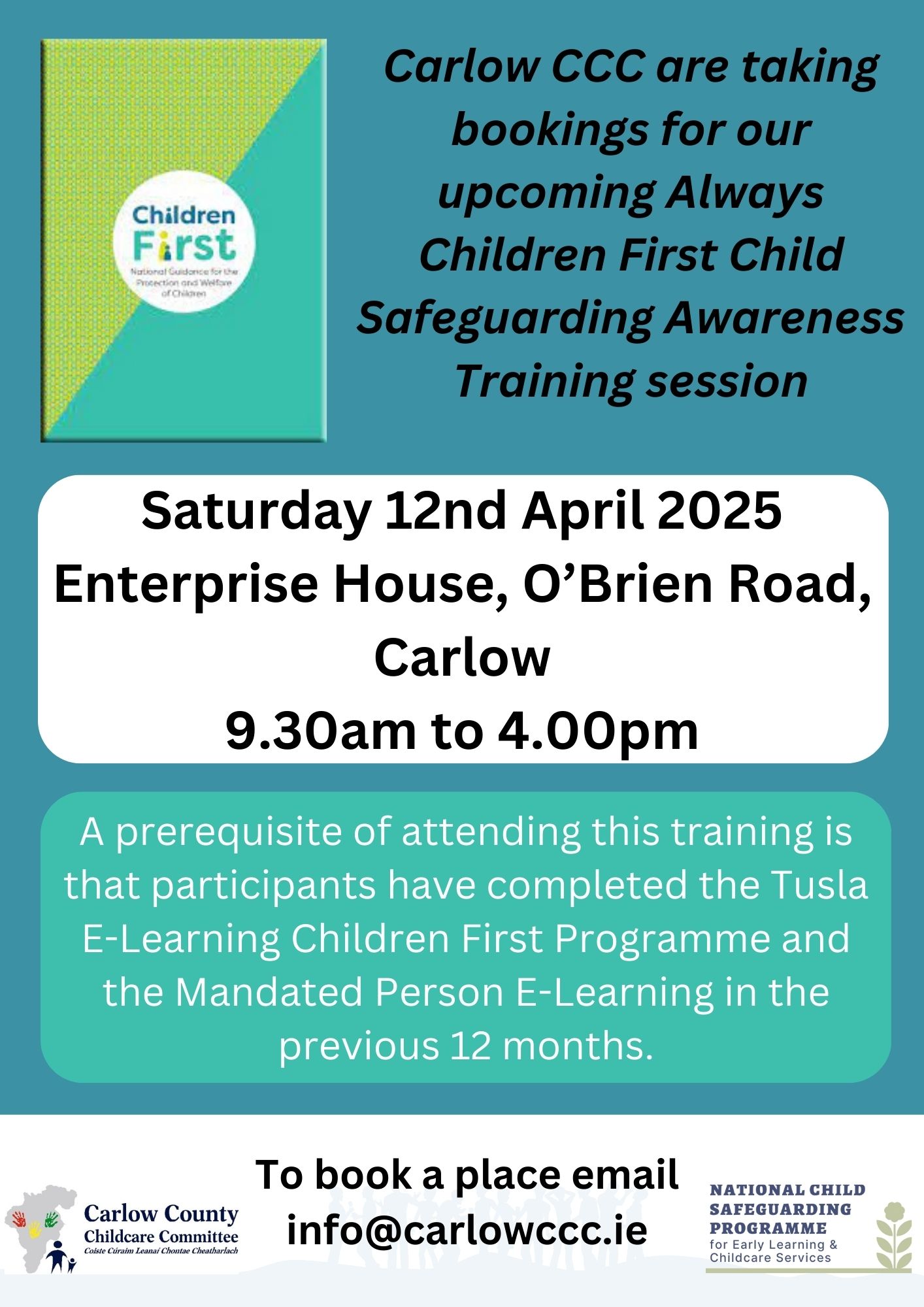 12th April 2025 Children First TrainingFebruary 19, 2025/by Carlow Childcare Committee https://carlowccc.ie/wp-content/uploads/2018/10/ccc4.jpg 0 0 Carlow Childcare Committee https://carlowccc.ie/wp-content/uploads/2018/10/ccc4.jpg Carlow Childcare Committee2025-02-19 11:42:542025-02-19 11:42:5412th April 2025 Children First Training