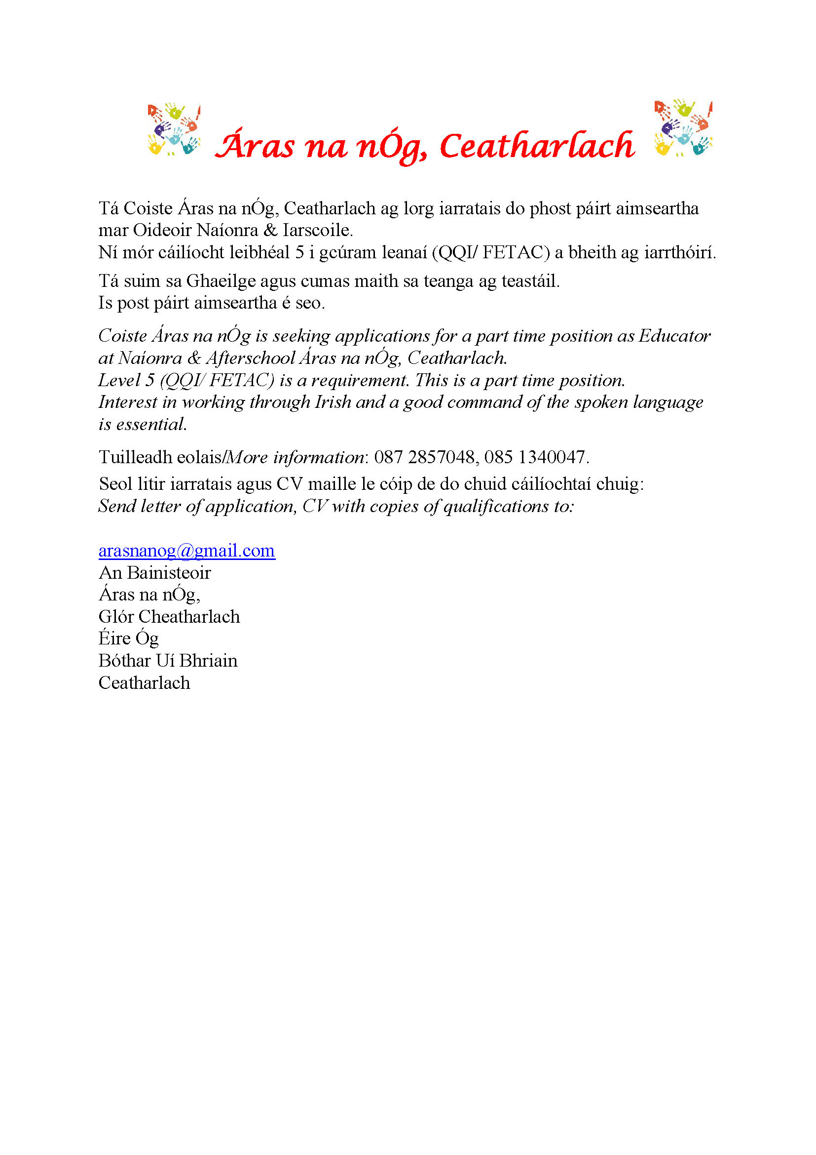 Fógra poist – Job Advert.pdfOctober 8, 2024/by Carlow Childcare Committee https://carlowccc.ie/wp-content/uploads/2018/10/ccc4.jpg 0 0 Carlow Childcare Committee https://carlowccc.ie/wp-content/uploads/2018/10/ccc4.jpg Carlow Childcare Committee2024-10-08 10:03:052024-10-08 10:03:05Fógra poist – Job Advert.pdf