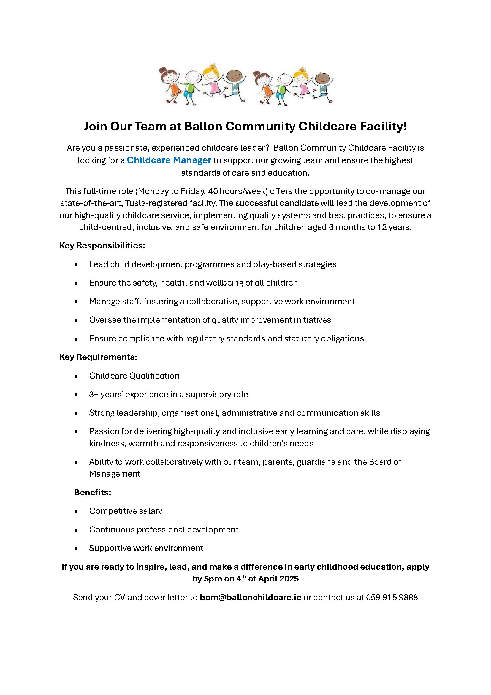 ChildcareManagerAdvertFinal 14 March 2024.pdfMarch 19, 2025/by Carlow Childcare Committee https://carlowccc.ie/wp-content/uploads/2018/10/ccc4.jpg 0 0 Carlow Childcare Committee https://carlowccc.ie/wp-content/uploads/2018/10/ccc4.jpg Carlow Childcare Committee2025-03-19 10:54:342025-03-19 10:54:34ChildcareManagerAdvertFinal 14 March 2024.pdf
