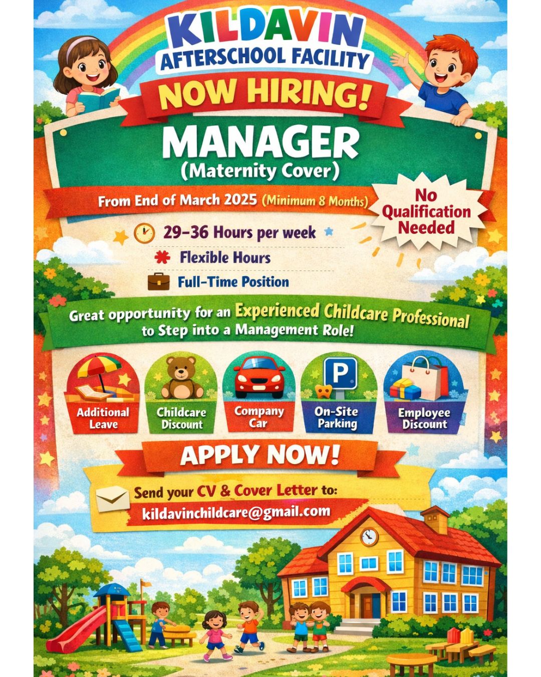 Manager (Maternity Cover)January 12, 2026/in Full-time/by Carlow Childcare Committee Kildavin, Co . Carlow. January 12, 2026 Full-time Kildavin Afterschool https://carlowccc.ie/wp-content/uploads/2018/10/ccc4.jpg 0 0 Carlow Childcare Committee https://carlowccc.ie/wp-content/uploads/2018/10/ccc4.jpg Carlow Childcare Committee2026-01-12 11:47:162026-01-12 11:47:16Manager (Maternity Cover)